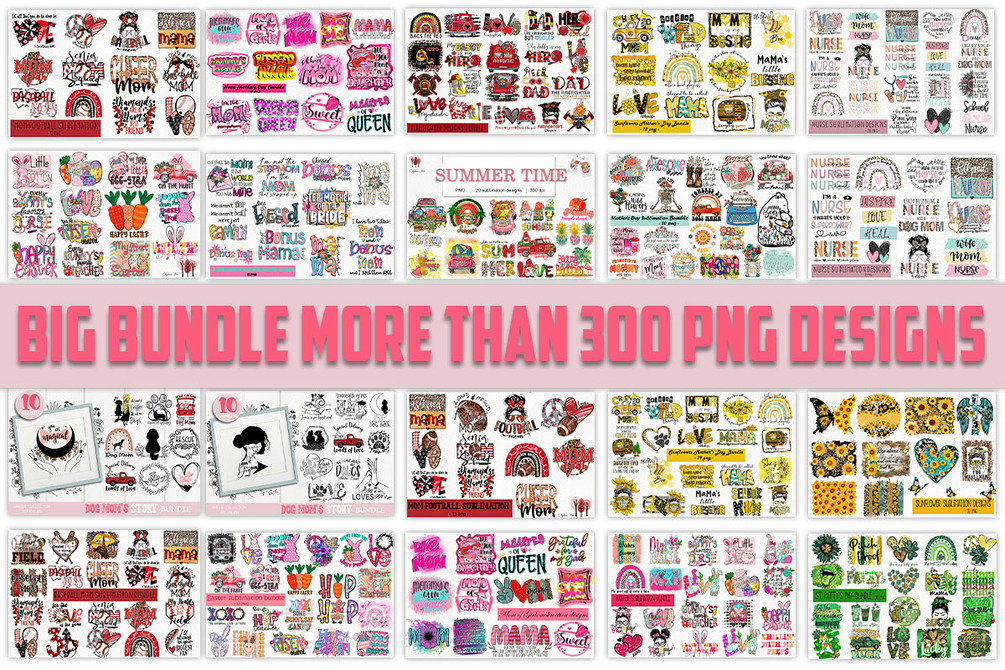 The biggest design bundle, including over 200 beautiful designs for Mother’s Day, spring, summer, football season and much more! These files all come as high-quality PNG files, with transparent background, making them perfect to use for sublimation and printing projects. Some design sets also include SVG, DXF and EPS, so that you can use them for your cutting projects as well as when you are in need of vector files.